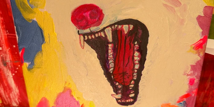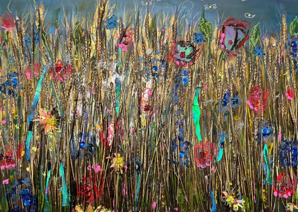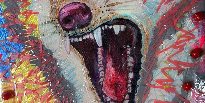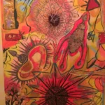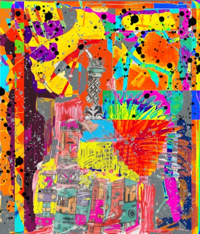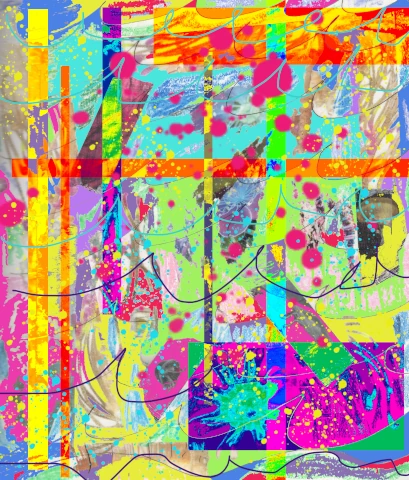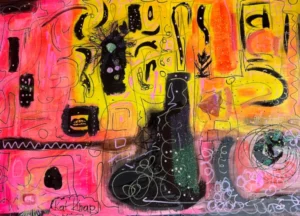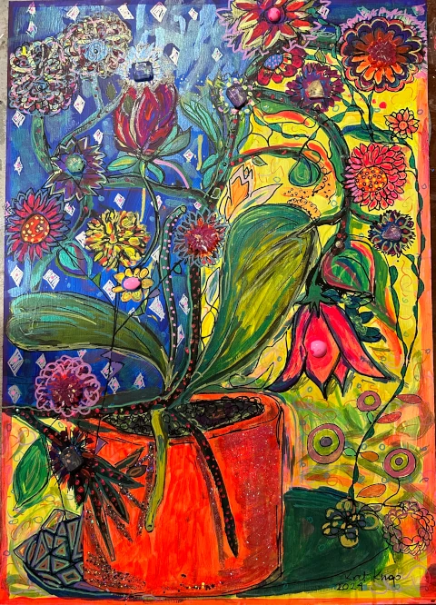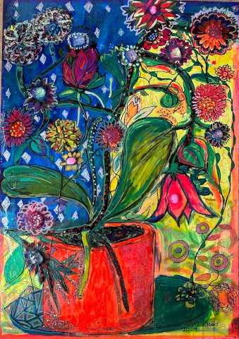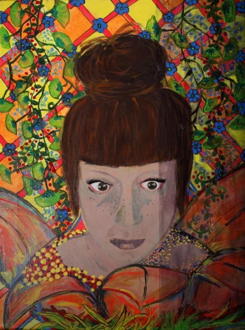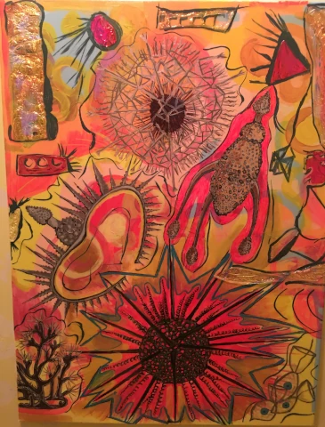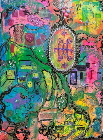mixed media: acrylic on canvas, acrylic markers, glue and glitter,