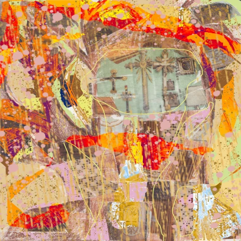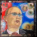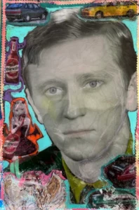 mixed media: acrylic on canvas, photographs of daughter and wife,