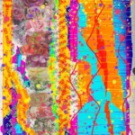 mixed media: acrylic paint, melted holographic foil, epoxy resin,