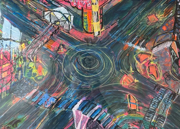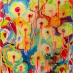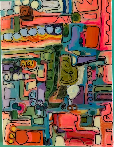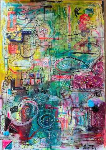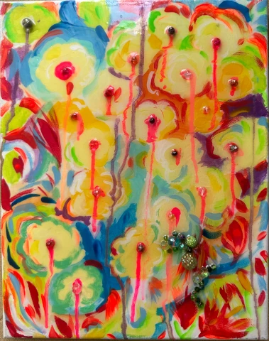 mixed media: acrylic on canvas, acrylic markers, glass beads, epoxy